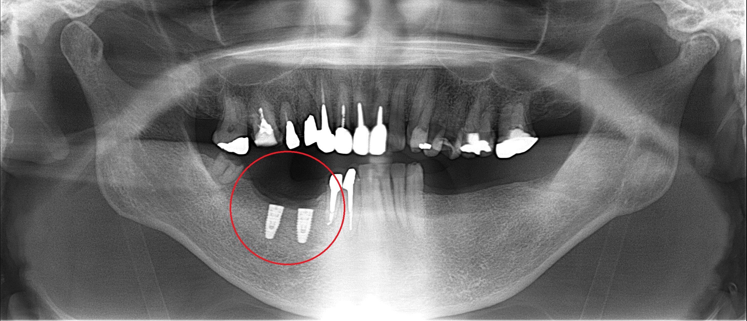 まずは右下の赤い丸の部分に埋入させてもらいました。