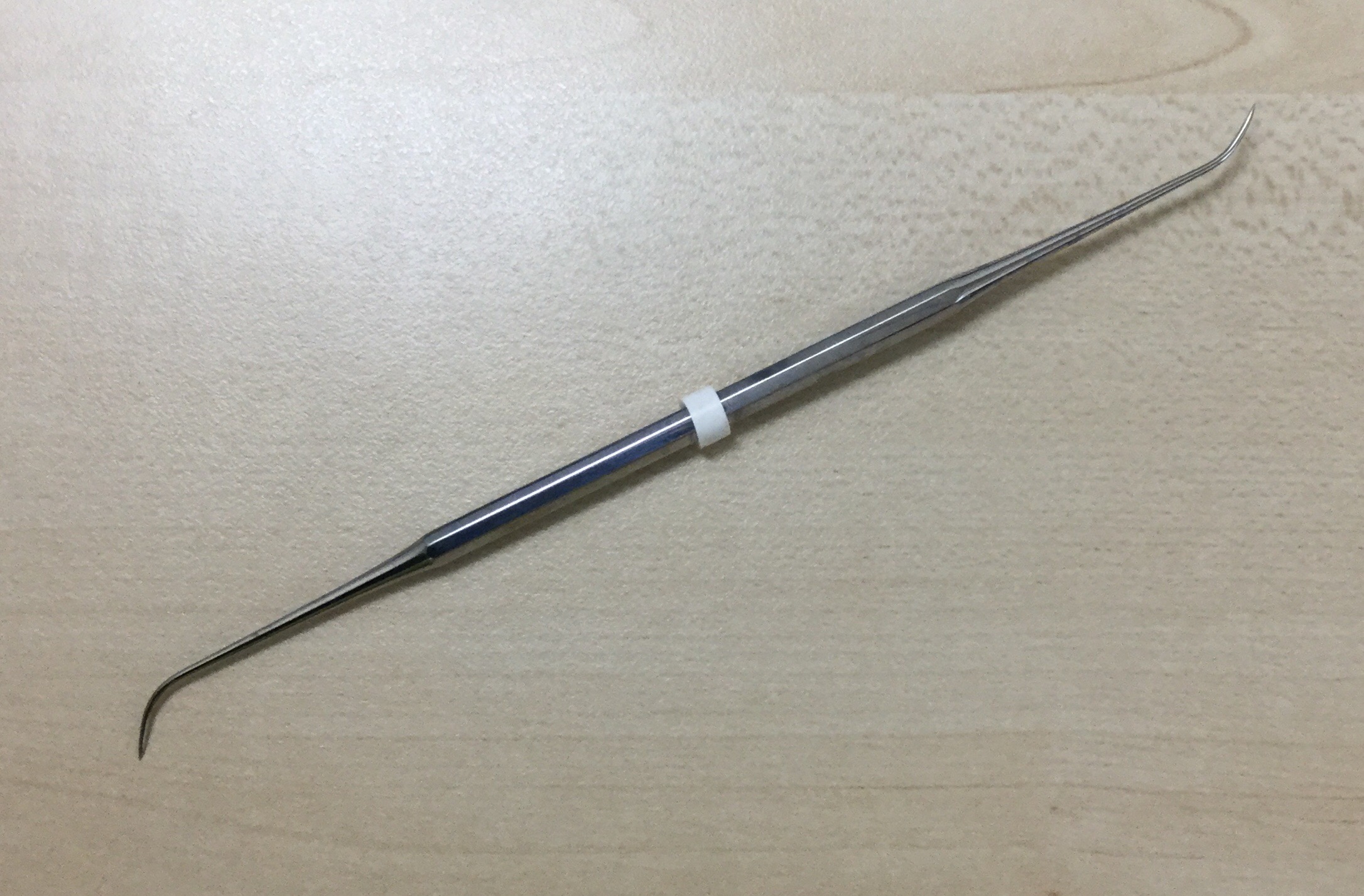 上の画像は探針と言って歯医者の基本セットに入っている